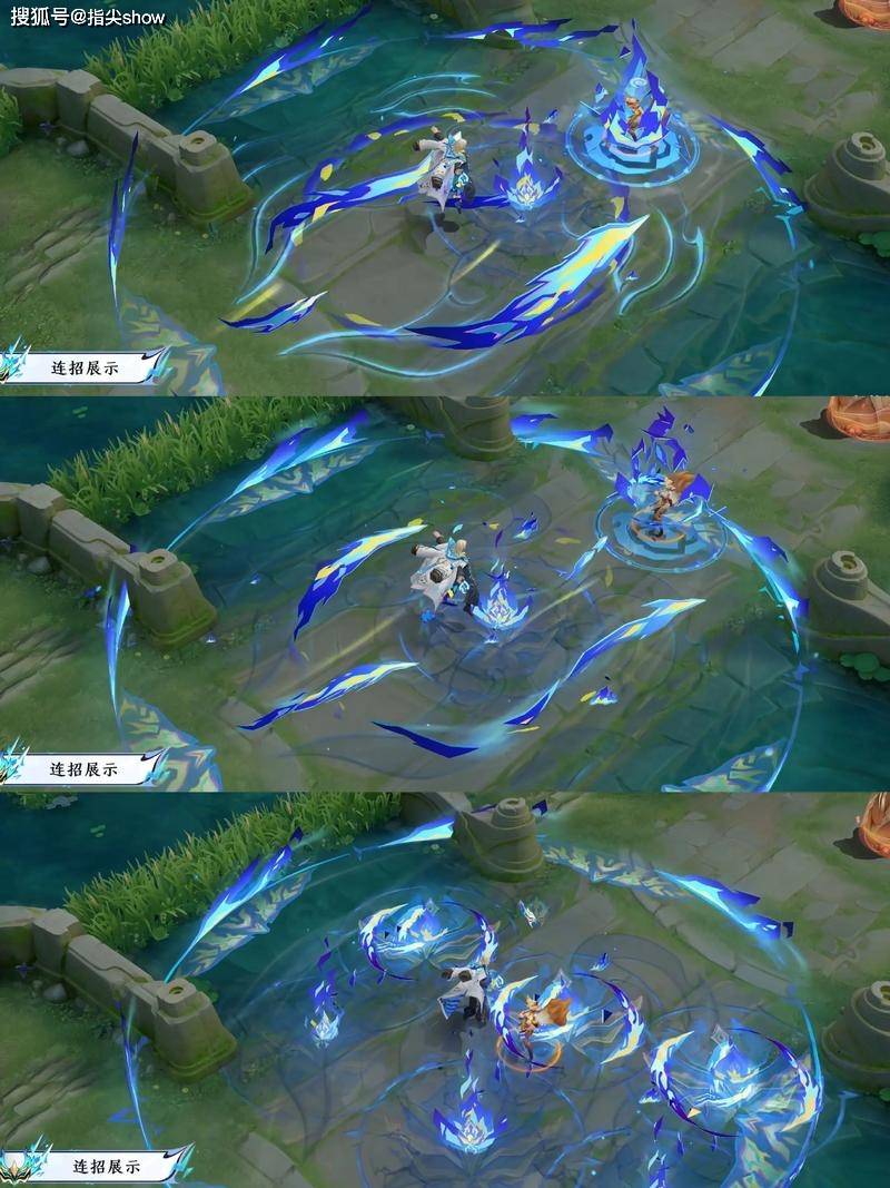 蓝黄配色,水花特效不遮挡视野,这种休闲娱乐风,虽然少了机甲的厚重压迫感,但更适合用来快乐上分,倒是更匹配刘禅的特效了。