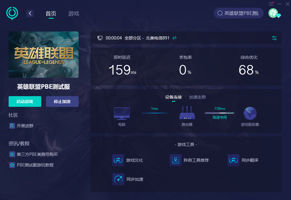 2.启动后获取流畅网络连接,畅玩《英雄联盟PBE测试服》。