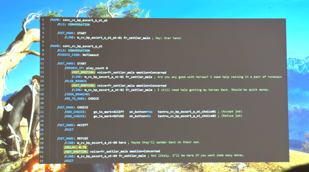 更要命的是,编剧长期不在引擎里工作,不知道引擎能实现什么,不能实现什么——只能祈祷自己写的东西能跑起来。