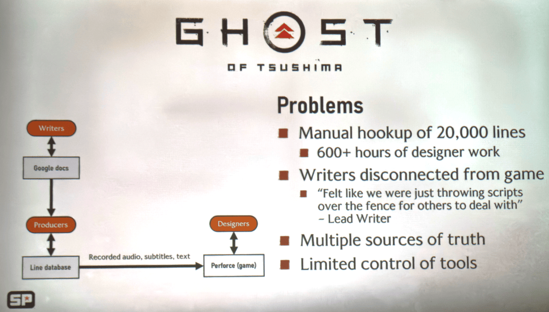 今年的GDC(游戏开发者大会)上,Sucker Punch工作室的工具程序员Roland Munsil,做了一场关于《羊蹄山之魂》编剧管线的分享。