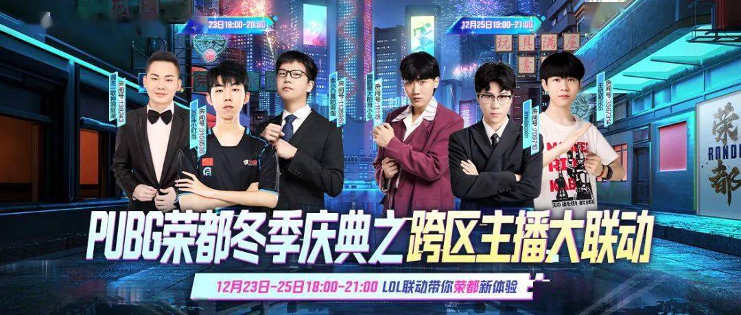 PUBG荣都冬季庆典之跨区主播大联动LOL专场,即将在12月23日和25日火热开启!