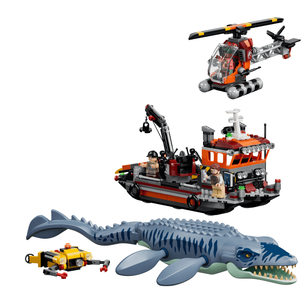 与去年那款不同,这次直接使用了大型沧龙模具,鳍、尾部、嘴巴均可动。配套一艘带起重机和停机坪的船只、一架浮筒直升机、一台水下无人机和 3 个人仔。海陆空立体对战,可玩性极高。