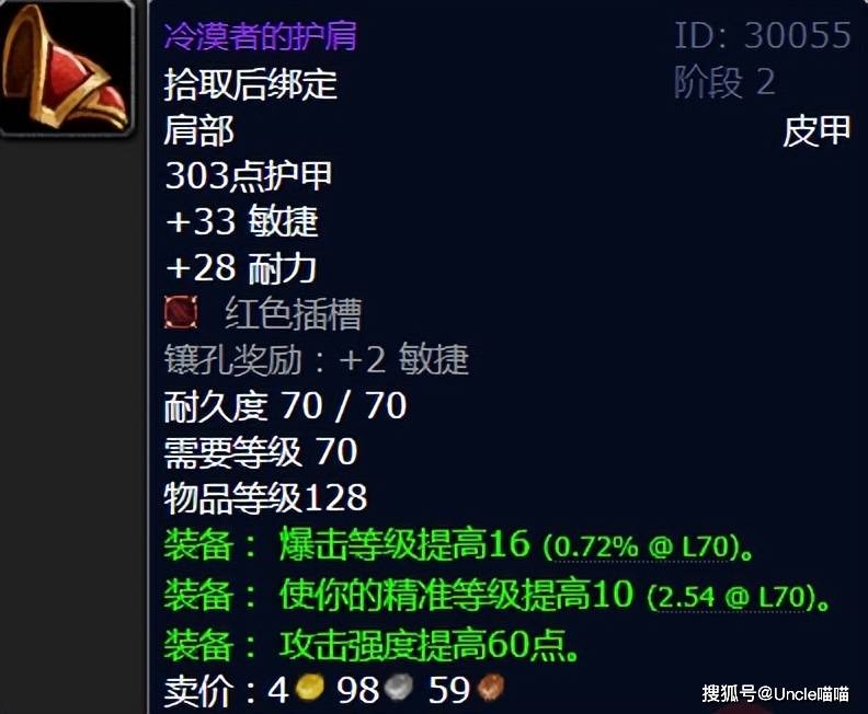 在TBC版本,精准属性的价值被彻底挖掘——是提升输出的绝对硬核存在。百亡腰带因此成为了所有近战职业的阶段毕业装备,熊德更是能获得双倍收益,不管是熊T形态还是猫德输出形态,这件腰带都能完美适配。不夸张的说在没有T6腰带之前他堪称最强!
