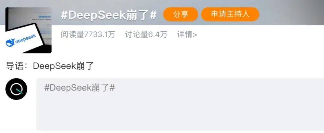 再就是上个月,DeepSeek一次普通的服务器崩溃事件,由被网友直接送上热搜。