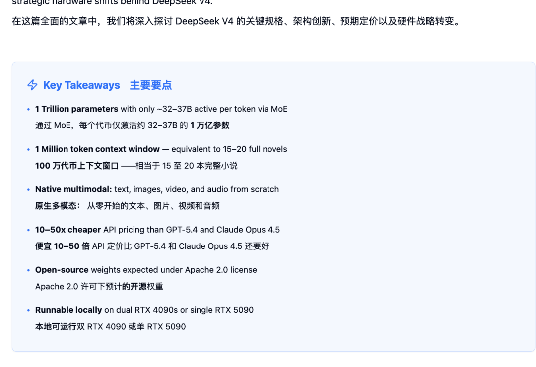 而根据目前社区流传的V4模型参数信息,完整的DeepSeek V4预计将支持1M token的超长上下文。