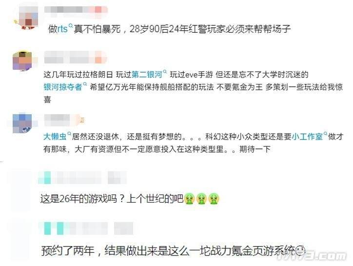 还有《无尽的拉格朗日》《EVE》玩家表示,忘不了大学时沉迷过的《银河掠夺者》,希望《亿万光年》能保持舰船搭配的玩法。