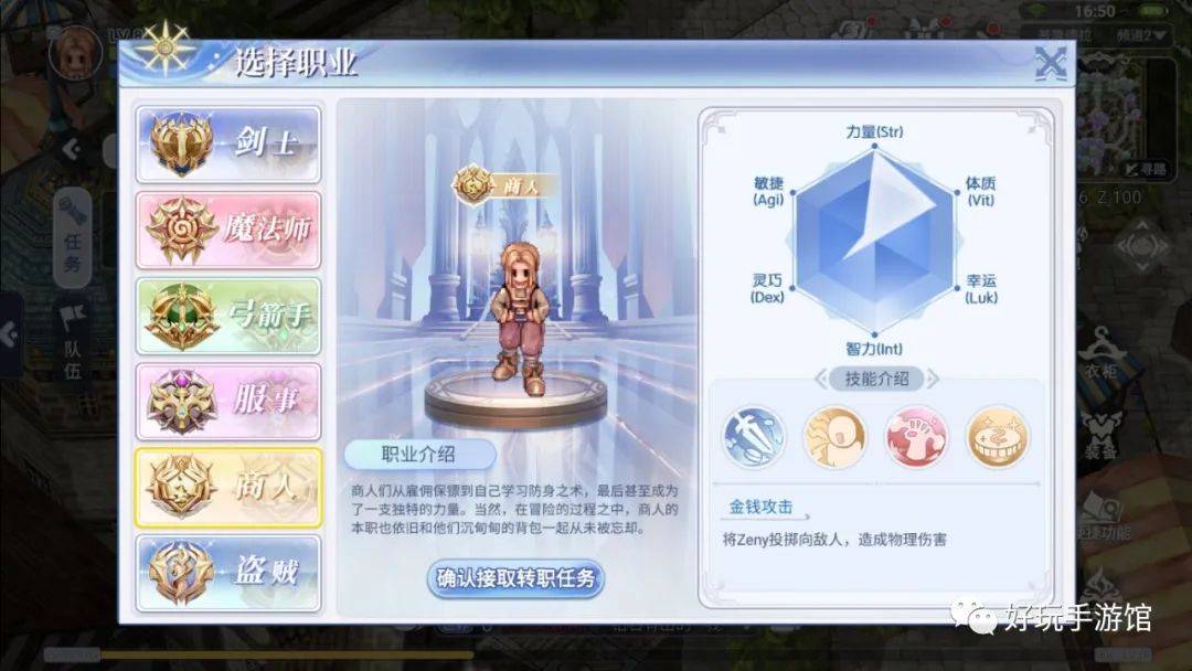 特点:精通商业技巧,财务支持能手!商人虽然不擅长战斗,但是有其独特的赚钱能力,例如开设“露天商店”自带摆摊功能,也能开采其独有的材料。商人也可以选择辅助玩法,拥有的技能大多都和商业有关,也有消耗金币来换取攻击的技能。
