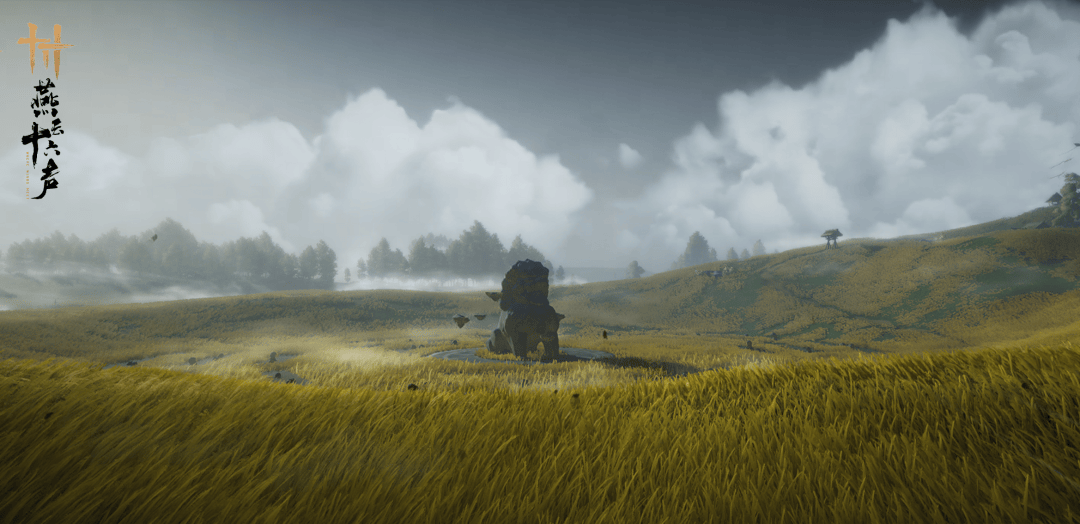 再往后到秦川,草原、旷野、四季流转,空间感更开阔,但远处如墨般的浓云,以及高草,让整体舒展、静谧的旷野背后又透露出一丝神秘、危机感。