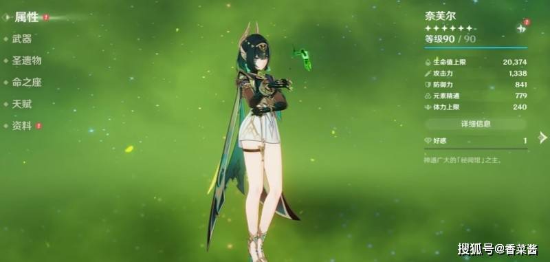 元素充能效率方面,奈芙尔通常无需刻意堆叠。她的元素战技可以产生能量球,配合队友的充能辅助,元素爆发的循环基本无忧。除非队伍中没有其他草元素角色,或武器不提供充能加成,才需要考虑在圣遗物副词条中补充少量充能词条。圣遗物套装方面,穹境示现之夜四件套是原神奈芙尔唯一且最佳的选择,其两件套提供的元素精通与四件套的月反应增伤及暴击率提升,完美契合奈芙尔的机制需求。四件套的暴击率加成在满辉状态下常驻,这使得圣遗物主词条的选择更为灵活,不必强制绑定暴击头。