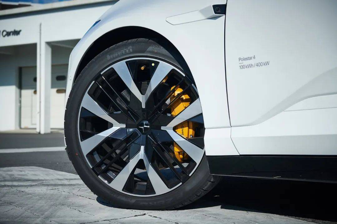 不过有一说一,无框车门加上看起来非常漂亮,大尺寸的轮胎(双电机版采用265/40 R22的倍耐力P ZERO PZ5轮胎),极星4跑高速显然路噪有点大。