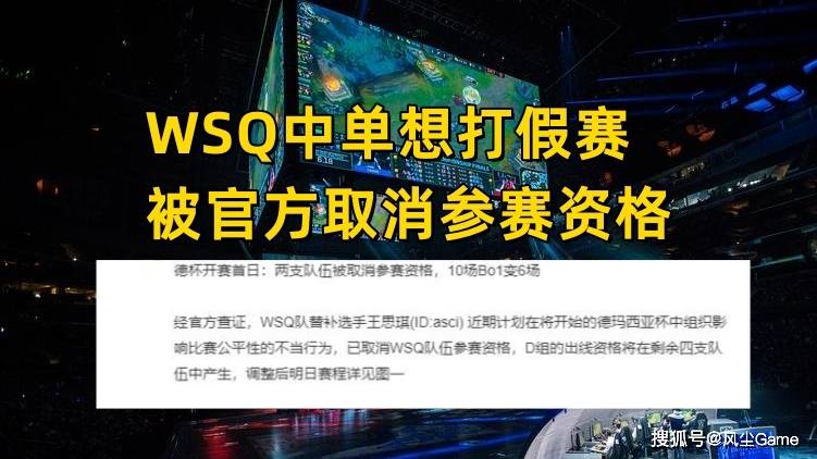 除了WINGS之外,还有一支战队,在小组赛即将开始的当天,也被官方除名了,这支队伍是从城市争霸赛晋级的队伍WSQ,经过官方查证,WSQ队替补选手王思琪(ID:asci) 近期计划在,在开始的德玛西亚杯中,组织影响比赛公平性的不当行为,已取消WSQ队伍参赛资格。