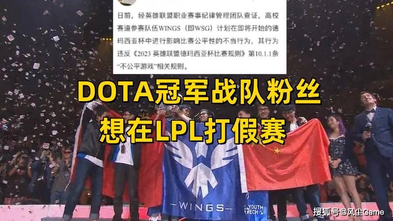 这个冠军就相当于LOL的S赛冠军,因为WINGS在DOTA还是很有名的,而高校赛道的这群小年轻,取相同的队名,也是在致敬这支DOTA的世界冠军战队,不过小组赛还没开始,就因为涉嫌假赛被禁赛,这波操作,真的是丢偶像的脸了,基本的电子竞技公平性都不尊重。