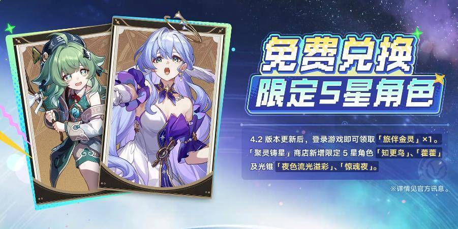 知更鸟和藿藿加入免费兑换限定5星角色的“聚灵铸星”商店,大家可以选择的角色更加丰富;还可以选择云璃、银枝和银狼代替常驻5星角色加入“角色活动跃迁”。