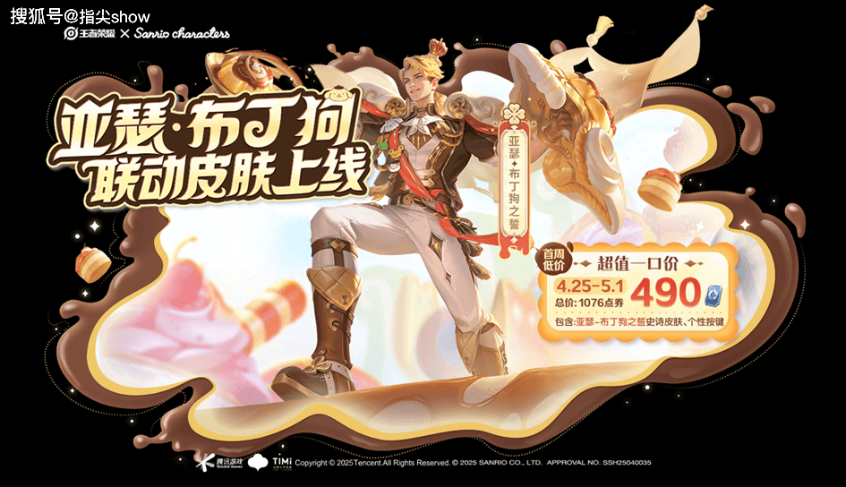 五五开黑节专属皮肤是没了,今年不知道是否能延续,而三丽鸥联动是25年的五五开黑节重点活动,其中免费的皮肤就是阿古朵的这款布丁狗之约。