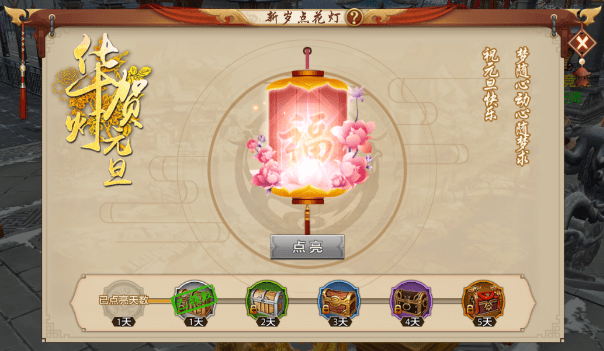 元旦花灯绘制完成后当然要点灯啦,新的一岁点燃新花灯,也点燃少侠们心中的情感寄托。在1月1日至1月5日,少侠每天上线点亮元旦花灯,即可获得惊喜的花灯奖励!