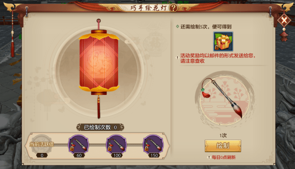活动期间,少侠每日登录、达到指定活跃值均可获得一次绘制花灯的机会,每次绘制花灯都可以获得一份超值奖励哦!