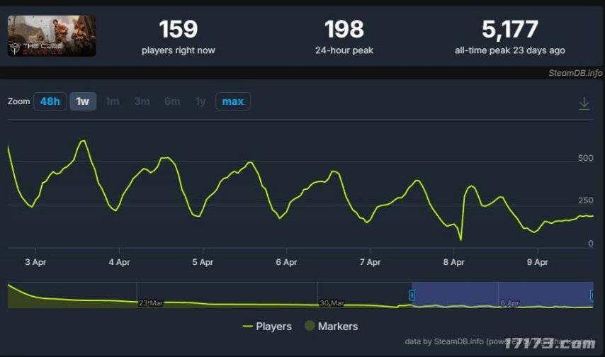 虽然官方没给出游戏停运的原因,但就在线人数看来显然是游戏的人气实在太差了,继续运营下去就纯亏本买卖了。游戏上线当天,最高同时在线人数只有5000多人,而近期24小时最高在线已跌至约200人了。