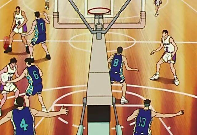 上半场进行了12分钟左右时,实际在漫画中并没有像动画版本中那样放大仙道的防守能力!整个上半场前半段,关于仙道的防守画面也仅有一幅特写,甚至都没有分镜。陵南用四联一盯的防守战术,仙道在半场附近就开始给牧绅一施加压力,但是井上雄彦对于这一防守并未给出任何的结果,所以菜鸟和大家一样,最初的时候都被动画TV版的故意放大仙道的防守给误导了!而从14比25的比分来看,仙道并不是将牧绅一完全压制,而是在一定程度上限制了帝王牧的核心作用。