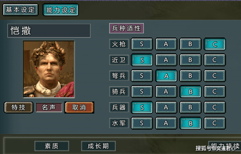 罗马的凯撒大帝,在游戏里的初始首技能是名声,不禁让我联想起了原版三国志11的袁绍。罗马城与巴黎一样,都是欧洲大陆上的超级都市。凭借着丰富的自然资源和雄厚的人才家底,凯撒阵营想要快速研发出坦克科技也并非一件难事。S级的坦克驾驶技术,令阿尔卑斯北面的法德都有些发怵。
