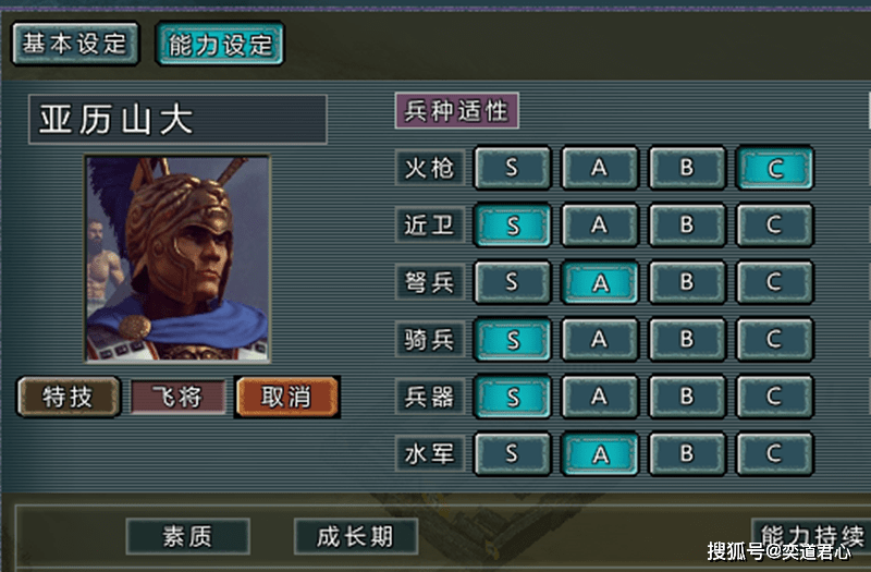 用博古通今形容三国志11国际版里的亚历山大大帝,是真的再贴切不过了。3个S级的兵种,当之无愧的欧洲四大统帅之首。坦克那一项是出道即巅峰,他同时也是四人之中唯一的A级水军,亚历山大既能把坦克驾驶得轻车熟路,在海上也能把巡洋舰开得贼遛,其他三人是真的自叹不如啊!