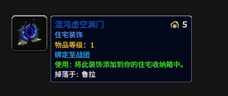 除了少数几个邮箱和烹饪篝火,《魔兽世界》的多数家宅装饰都不具备实际功能,但上周解锁的“进军奎尔丹纳斯”战役带来一个全新家宅装饰“混沌虚空渊门”,可以达到炉石效果,将你传至艾泽拉斯各地。