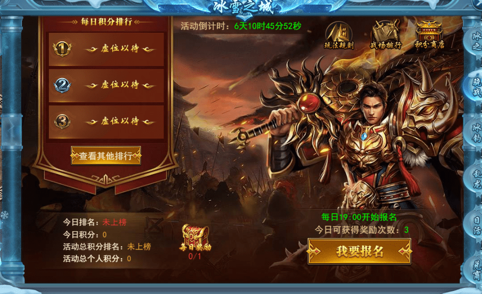 1.今天给大家介绍的王者之心2骁骑战场活动,骁骑战场活动是冰雪节活动期间每天晚上7点开始报名,没人当天参加的前三场可以获得奖励。