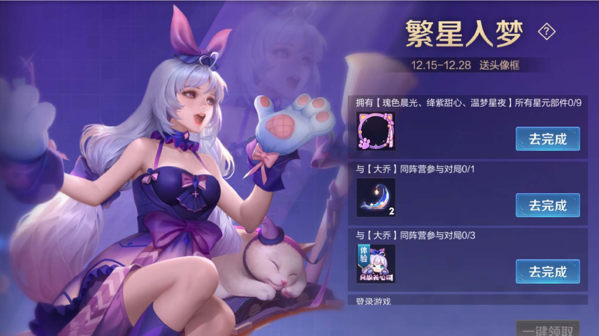 再就是大乔的星元皮肤获取活动,再过一段时间就要结束了。大乔前段时间上线了三套星元皮肤,有两套用点券购买,有一套免费赠送,但是前提是完成任务。