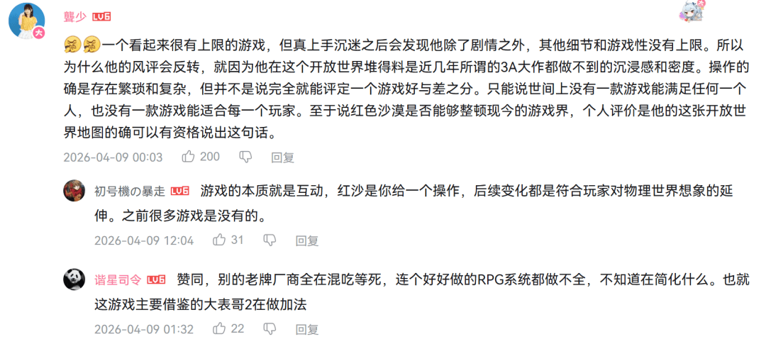 把《红色沙漠》的口碑反转归功于补丁,是一个方便叙事,我们当然可以说,是因为补丁修改及时,所以《红色沙漠》口碑迎来了好转。