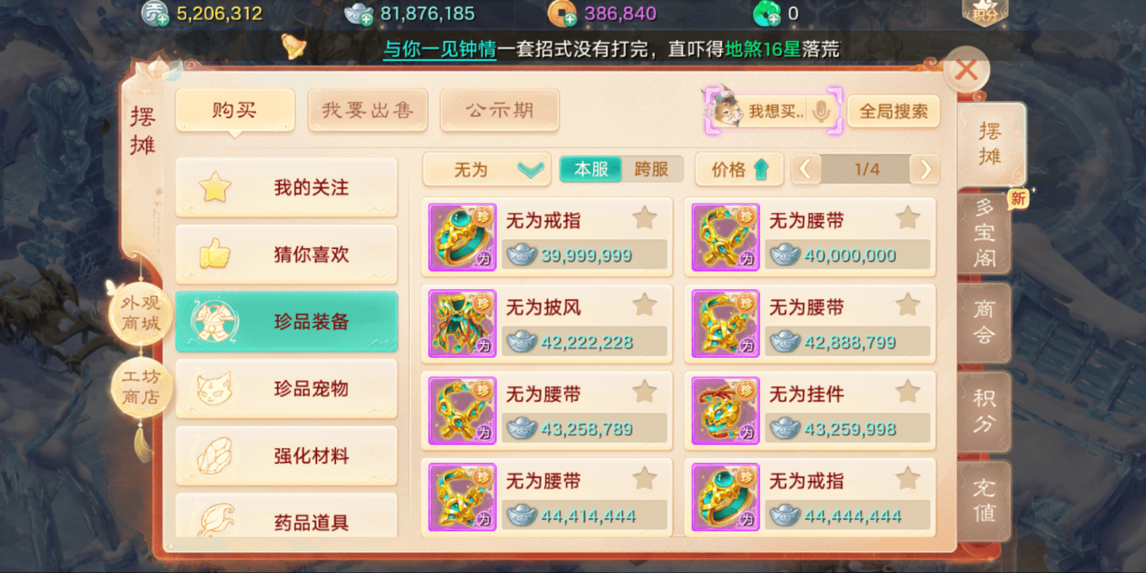 《一念圣魔》新增的双套装、新佩饰系统,会让“无为”这类基础套装成为新装备体系的“过渡刚需”——不少玩家为预留新套装的属性空间,但这也同时为商人带来了机会。