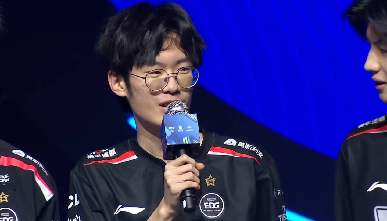 这里必须要和大家说的一点是,EDG此次派出的德杯阵容,是之前上海邀请赛中的冠军阵容,在之前的邀请赛中,EDG战队是击败了LCK派出的GEN战队,GEN战队中有两大主力选手Chovy和Peyz。