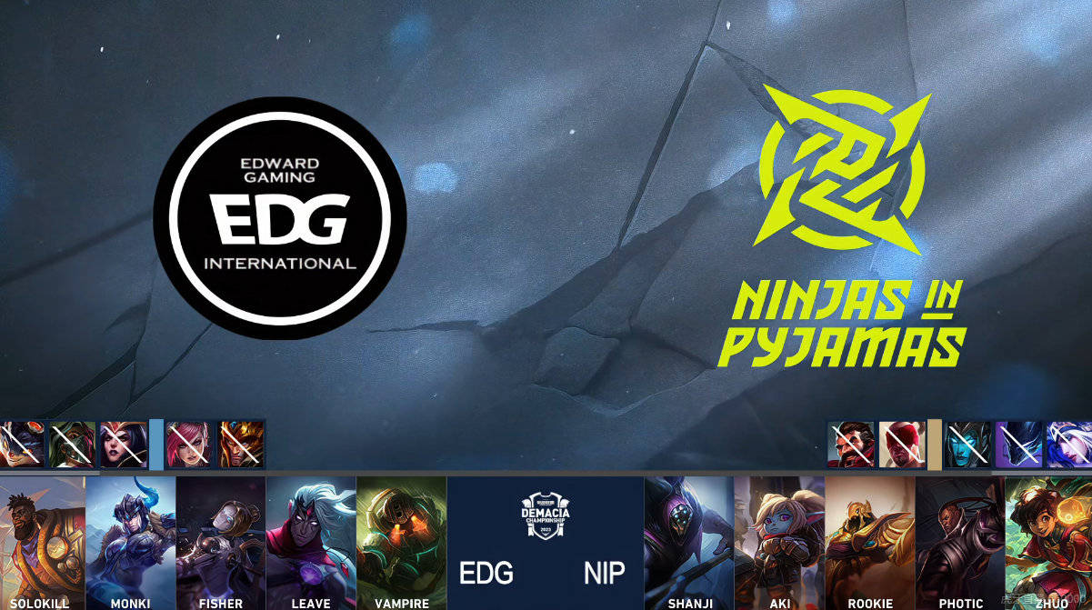 对阵NIP的比赛,NIP战队显然拥有更强的硬实力,EDG强势入侵野区被对面轻松化解,下路Leave被Photic暴压,Fisher也是各种失误迷路被NIP轻松击败,仅有上单Solokill打出一波精彩的单杀Shanji的操作。