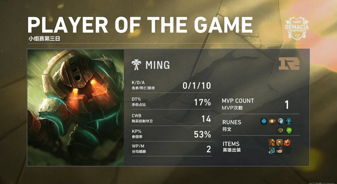 阔别半个赛季,Ming重新回到了RNG。原本很多传闻是他会加盟其他队伍,但最终还是留在了RNG。而明年他的搭档就是LWX,算是联盟里平均年龄比较大的双人组了。今天的表现来看还是一如既往,硬辅王,泰坦King。如果S14又有软辅的环境,恐怕RNG依然会很难受。而且对于如今下路辅助英雄池需求越来越深的情况下,老将恐怕很难跟得上。