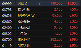据财联社报道,12月27日游戏股集体回弹,网易高开近14%,哔哩哔哩涨超6%,心动公司涨超4%,腾讯控股涨近3%。
