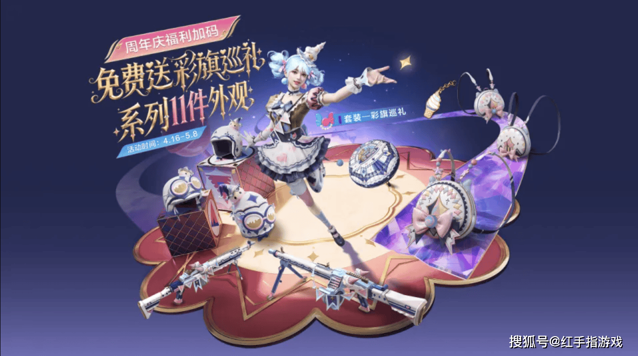 这是本次周年庆的王牌福利!不是一件,是11件!包括套装、枪械皮肤(Mk14、MG3)、全套头盔、全套背包甚至降落伞 。