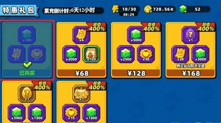 这个礼包分别在每天、每周、每月都可以进行领取,入口就在游戏主页的左下方的特惠礼包,玩家可以从中获得大量的钻石。