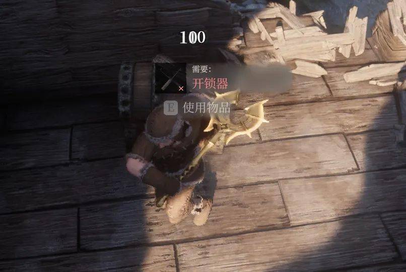 前期就有几个让我比较印象深刻的地方:仍在教程期的时候,画面上提示我要造钩索来翻越过一堵木质遮挡墙,我本着头铁的态度,用伐木斧完成强拆,硬走了过去;此后面对需要开锁器的宝箱,我同样也用砍刀达成了目的。