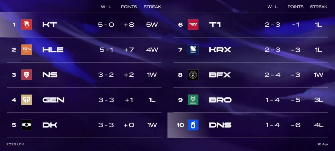 HLE新赛段开赛后势头凶猛,却被T1横扫,GEN方面,先输KT再输DK,为追求更高排名,GEN已不太能接受输掉排名之争。