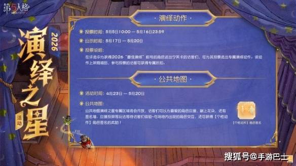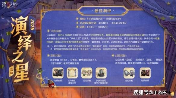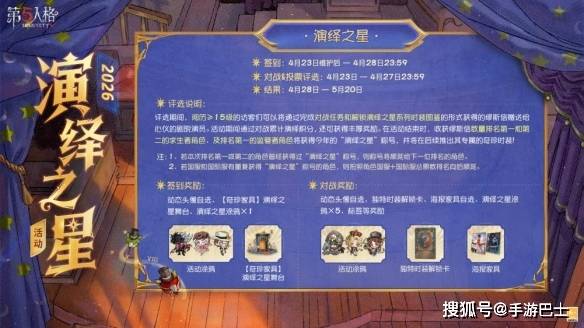 5GWAN手游网(www.5gwan.net)2026年04月22日:大家好,我是5GWAN小编莉莉,时光流转,缪斯剧院的帷幕再度升起!网易首款1V4非对称竞技手游《第五人格》2026年演绎之星活动即将开启,在光影交织的庄园舞台上,演员们已整装待发,一场关于热爱与演绎的华章正在等待访客们共同书写。让我们一起见证,谁能在聚光灯之下脱颖而出。