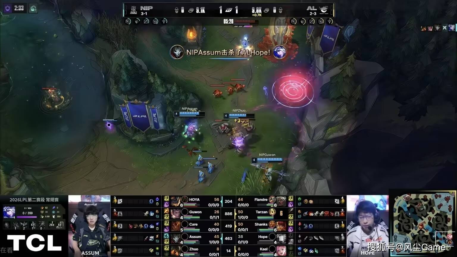 LPL第二赛段组内赛,第三周已经开赛了,上一个比赛日,黑马战队NIP,和打满冠AL展开对决,一个势头正盛,一个状态低迷,赛前观众都以为,NIP有赢下AL的机会,结果两场看下来,NIP本质还是涅槃,除了下路的阿萨姆,对线能稳压Hope之外,剩下的位置,NIP对位都打不出优势。