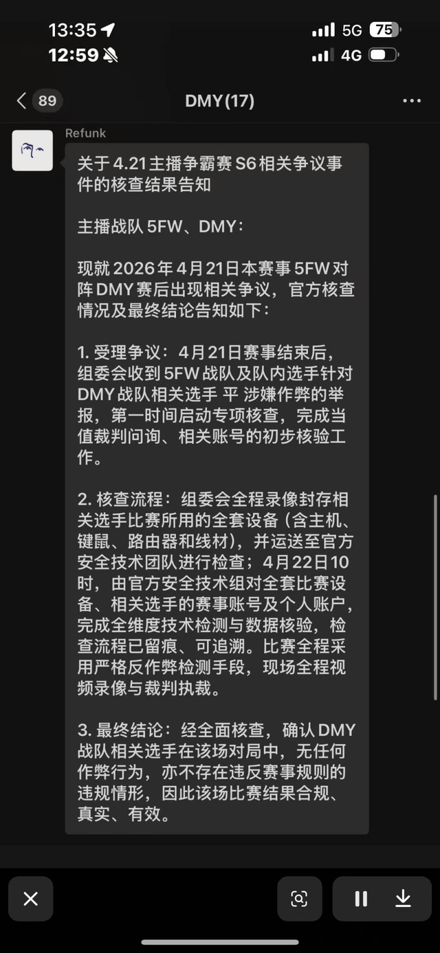 而这次官方的动作也非常效率,很快就在次日下午宣布调查结果:经全面核查,确认DMY战队相关选手在该场对局中无任何作弊行为。这个消息一出很快就在圈内引发轰动,网友纷纷找到质疑平开挂的B站主播相关的直播间和评论区讨说法,让他们为自己带节奏质疑作弊的行为向平选手道歉。