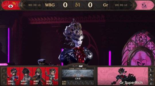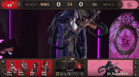 WBG的求生者选择了前锋、画家、杂技演员、“心理学家”(BAN歌剧演员、爱哭鬼);Gr的监管者SuperRich选择了守夜人。(BAN昆虫学者、古董商、拉拉队员、飞行家)