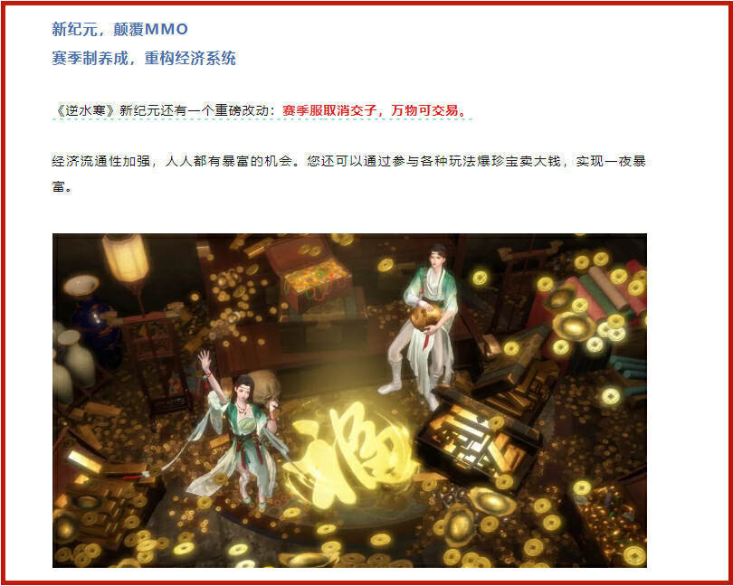 在逆水寒官方公布的新赛季内容中,讨论度最高的首先就是游戏货币机制的改变!
