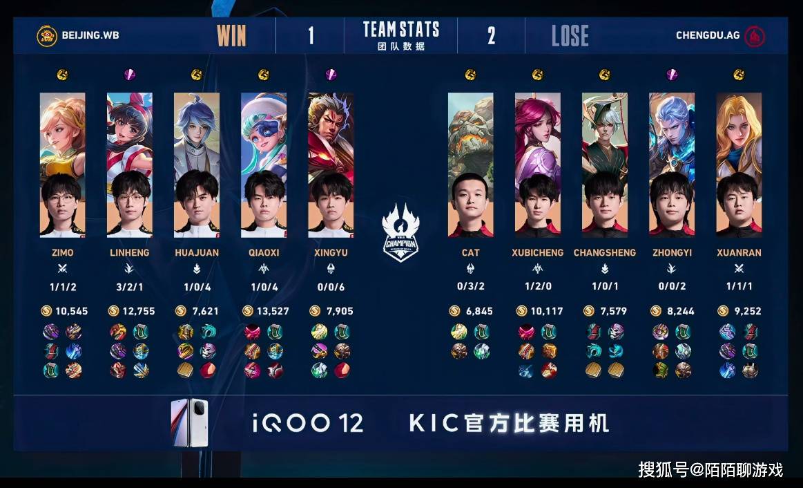 11分12秒,北京WB拔掉AG超玩会的全部外塔。13分25秒,北京WB中上两路兵线齐进,此时AG超玩会只剩中路一座高地塔。15分钟,北京WB收下双龙,借助龙兵对AG超玩会发起最后的进攻,击杀多人后破掉水晶,1比2,扳回一局!