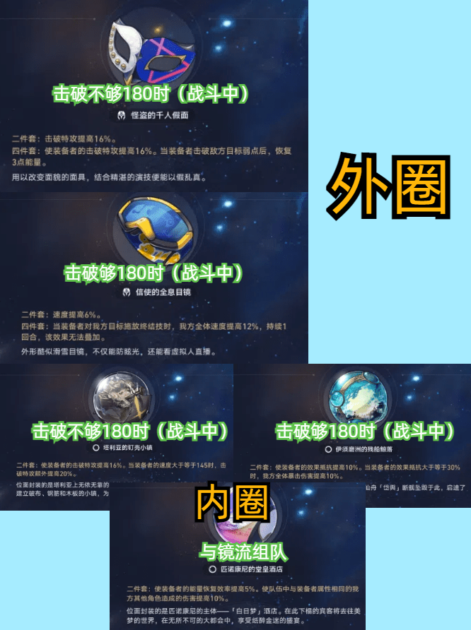 内圈:公国2(战斗中击破不够180时),龙骨2(战斗中击破够180时),匹诺康尼2(与镜流组队时)。