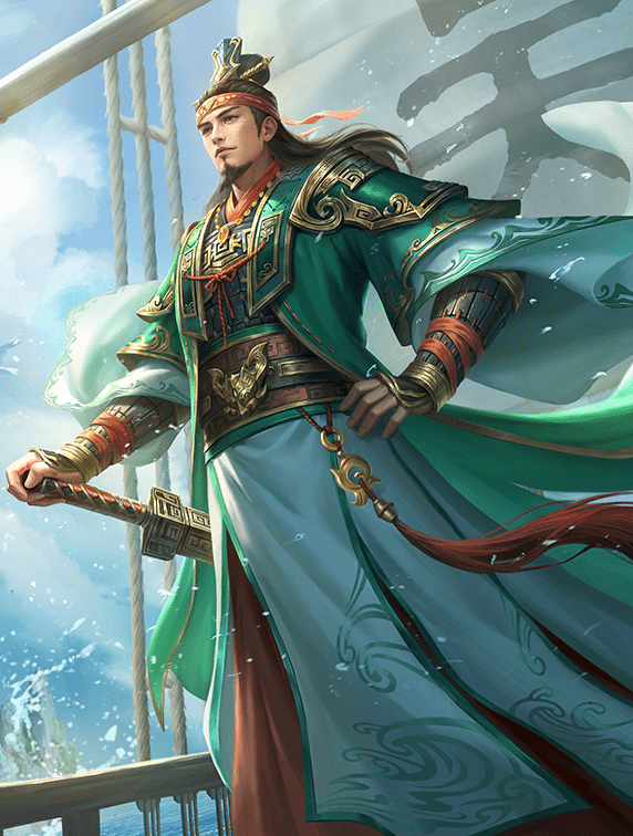 鲁肃的带兵能力放三国里只能是二到三流,但眼界卓识绝对是能和诸葛丞相与司马宣帝平分秋色的存在,他像荀彧一样早早看出士族体系在乱世的崩溃(建议举家搬迁),荀彧选择的重振汉朝廷来洗牌,结果是被曹操换了房本;鲁肃则是烧冷灶——散家财广交英杰,于是就有了指囷相赠的美话;其第一次见孙权时就有了“塌上对”的远见,在刘表病故后亲赴荆州找寻机遇,并“擅自做主”力挺联刘抗曹:在下以为孙权收到曹操的信时是想过投降偏安的,但鲁肃的话里有话直接让孙权看清了现实——你孙家害了陆康这种江东好人有民怨,赶走王朗华歆这种在“魏国”当大官的大儒有众怒,放下武装只有死路一条,你哥孙策就是前车之鉴。就这样周瑜再来表一波决心才有了赤壁之战。后面又是力争将南郡给刘备避免在荆州北据曹操、南防刘备的尴尬局面,让东吴能在荆州博弈里抽身以图东南,要不是周瑜早亡和大魏吴王带兵太拉,哎。后来荆州也是如此,能看出鲁肃和关羽与孙权两个人都能说上话,孙刘才能在2次“摩擦”中停战,因为鲁肃明白东吴现状吃下荆州是很难再进一步的,等曹魏爆发内乱东吴靠比刘备稳定的体量浑水摸鱼才是上策。可惜一场瘟疫带走了他和年轻的凌统,大魏吴王和继任者吕蒙再一次短视了,哎!立绘方面真的是在线,蓝天大江无不透露着这位主角的“锐目如炬”,象征着他难以估量的远见,如果祖逖的“中流击水”有原画,估计就是这副英姿吧。