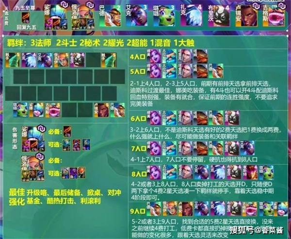 羁绊:5迪斯科、4耀光、3法师、2秘护、2斗士、1高能、1大触