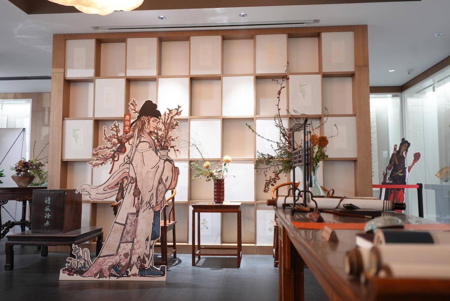 “吴门画派”是本次快闪活动的另一个主题词,也是江南文化的一个具体体现。《江南百景图》的游戏核心是围绕玩家扮演的“知府”与吴门画派传人“文徵明”一同在画卷之中构建明朝江南盛景。此次线下联动,以朵云轩丰富的藏品和书画场景,构建以“吴门四家”主题展陈,让游戏玩家犹如进入江南画斋,在现实中看到游戏中耳熟能详的角色创作的艺术作品,近距离感受明清江南文人画家的生活场景。
