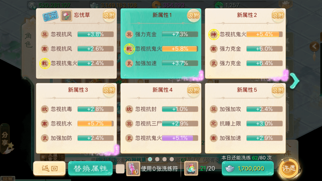 一次洗练,三个鬼火属性,两个橙色特殊位
