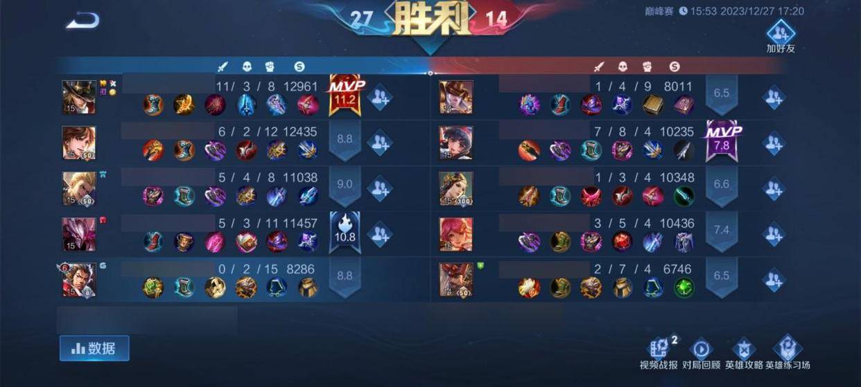 再说一下干将莫邪的出装,走的是冷却缩减的路线,主打一个火力压制,可以这么玩,但是强度肯定是比秘法之靴回响之杖那一套要弱的,因为他输出的装备太少,全靠技能高频率去堆输出,对敌方后排没有致命威胁,打出来的很多伤害都是无效伤害,别看最后面板输出高,但是作用小。