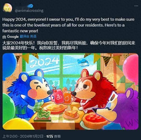 2024年12日凌晨,动物森友会官方社交媒体发布消息,称将在2024年对于居民来说是最美好的一年。